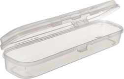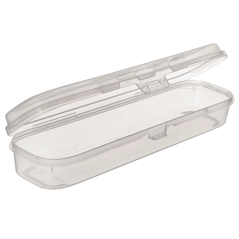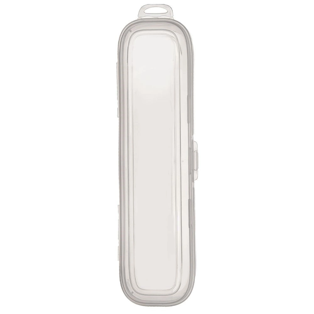 Praktiškas skaidrus dėklas saugiam dantų šepetėlių, akinių, stalo įrankių ar kosmetikos laikymui ir transportavimui. Patvarus plastikas, patikimas spragtelėjimu užsegamas uždarymas ir kilpelė pakabinimui daro jį idealiu palydovu kelionėse ir mokykloje. Matmenys 25 × 6 × 4 cm.