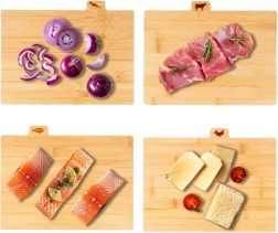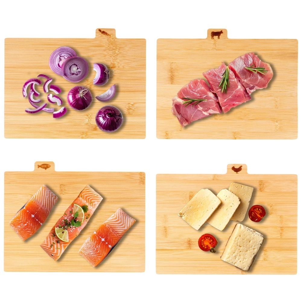 Kiekviena lentelė turi skirtuką su graviruota ikona konkrečiam produktų tipui – daržovėms, paukštienai, mėsai ir žuviai. Taip lengvai išvengsite kryžminės taršos ir išlaikysite švarą ruošiant maistą.