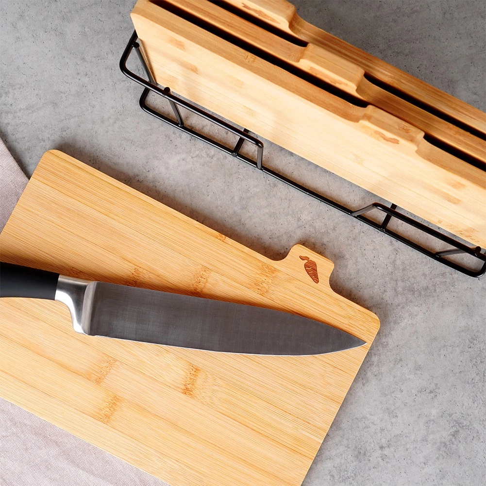 Kodėl verta rinktis bambuką: jis lengvas, tvirtas, švelnus peiliams ir natūraliai atsparus drėgmei bei deformacijoms. Dėl greito džiūvimo ir to, kad nesugeria kvapų, puikiai tinka kasdienei maisto gamybai. Laikui nepavaldus dizainas ir kompaktiški matmenys puikiai dera bet kurioje virtuvėje.