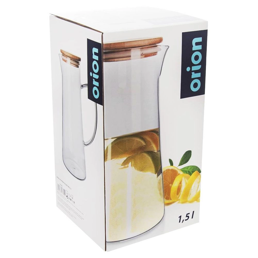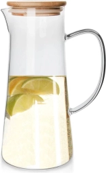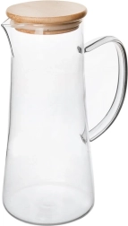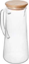 Stilingas 1,35 l talpos ąsotis pagamintas iš patvaraus borosilikatinio stiklo, atlaikančio temperatūras nuo 20 °C iki 230 °C. Su natūraliu bambukiniu dangčiu ir silikoniniu sandarikliu, kad gėrimai ilgiau išliktų švieži ir apsaugoti nuo nešvarumų ar vabzdžių. Ergonomiška rankena ir formuotas snapelis užtikrina saugų ir tikslų pilstymą be lašų.