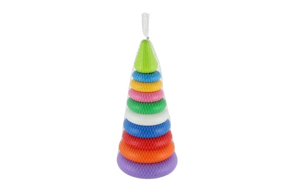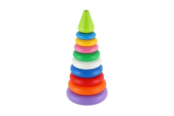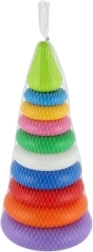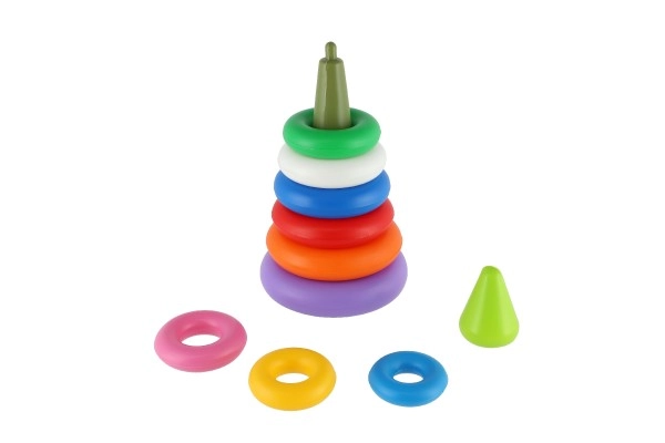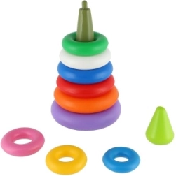 Kiekvienas žiedas yra vis kitos spalvos, todėl padeda atpažinti spalvas ir skirti dydžius. Ryškios spalvos traukia vaikų dėmesį, o piramidę bus smagu dėlioti ir išardyti vėl ir vėl.