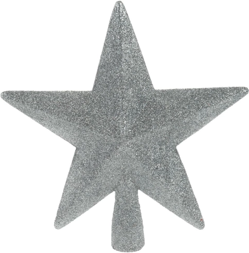 Elegantiška medžio viršūnė – blizgi sidabrinė žvaigždė 19 × 19,5 cm – suteiks jūsų eglutei šventinį spindesį. Pagaminta iš patvaraus, nesudužtančio plastiko, saugi namams su vaikais ir augintiniais, o dėl praktiškos tvirtinimo dalies lengvai ir stabiliai užsideda ant viršūnės.