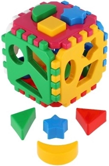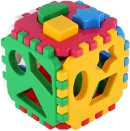 Klasikinis rūšiavimo kubas patiems mažiausiems lavina smulkiąją motoriką, loginį mąstymą ir formų bei spalvų atpažinimą. Spalvotos detalės įstatomos į atitinkamas angas, o atskiros kubo sienelės sujungiamos dantytais kraštais lengvam surinkimui. Ideali didaktinė priemonė vaikams nuo 12 mėnesių.