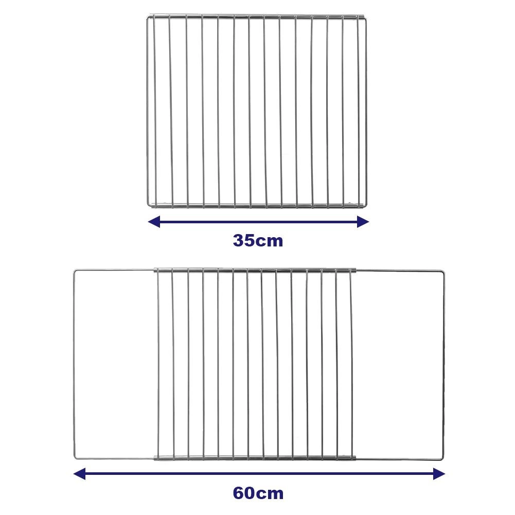 Išplečiama 35–60 cm konstrukcija su varžtiniu fiksavimu leidžia tiksliai pritaikyti groteles prie jūsų orkaitės pločio.