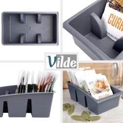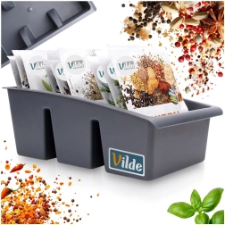 Palaikykite tvarką virtuvėje su šiuo praktišku prieskonių pakelių organizatoriumi. Jame yra trys erdvūs skyriai, aiški rūšiavimo sistema, lengva prieiga ir patvari konstrukcija iš lengvo pilkos spalvos plastiko. Puikiai telpa į stalčių, spintelę ar ant darbastalio ir padeda turėti visus prieskonių pakelius vienoje vietoje.