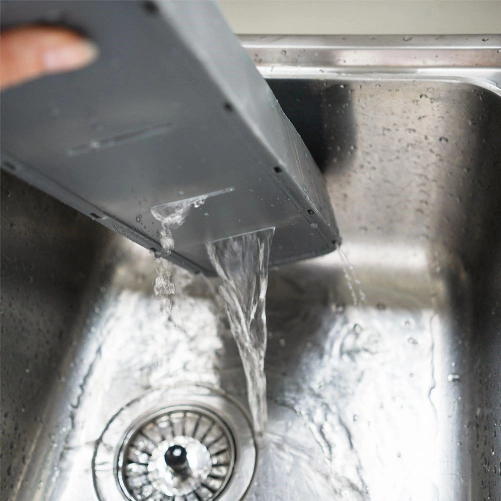 Liekna forma ir neslystanti atrama leidžia naudoti stalčiuje arba kaip laikiklį ant stalviršio.