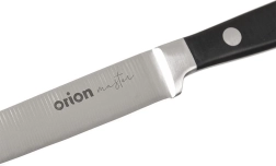 Universalus virtuvinis peilis iš kolekcijos MASTER, bendras ilgis 23,5 cm, o aukštos kokybės nerūdijančio plieno ašmenys – 12,5 cm. Suteikia ilgalaikį aštrumą, stabilų pilnavidurį kotą ir ergonomišką ABS rankeną su trigubu kniedijimu, užtikrinančiu saugų ir patogų suėmimą tiek namuose, tiek gastronomijoje.