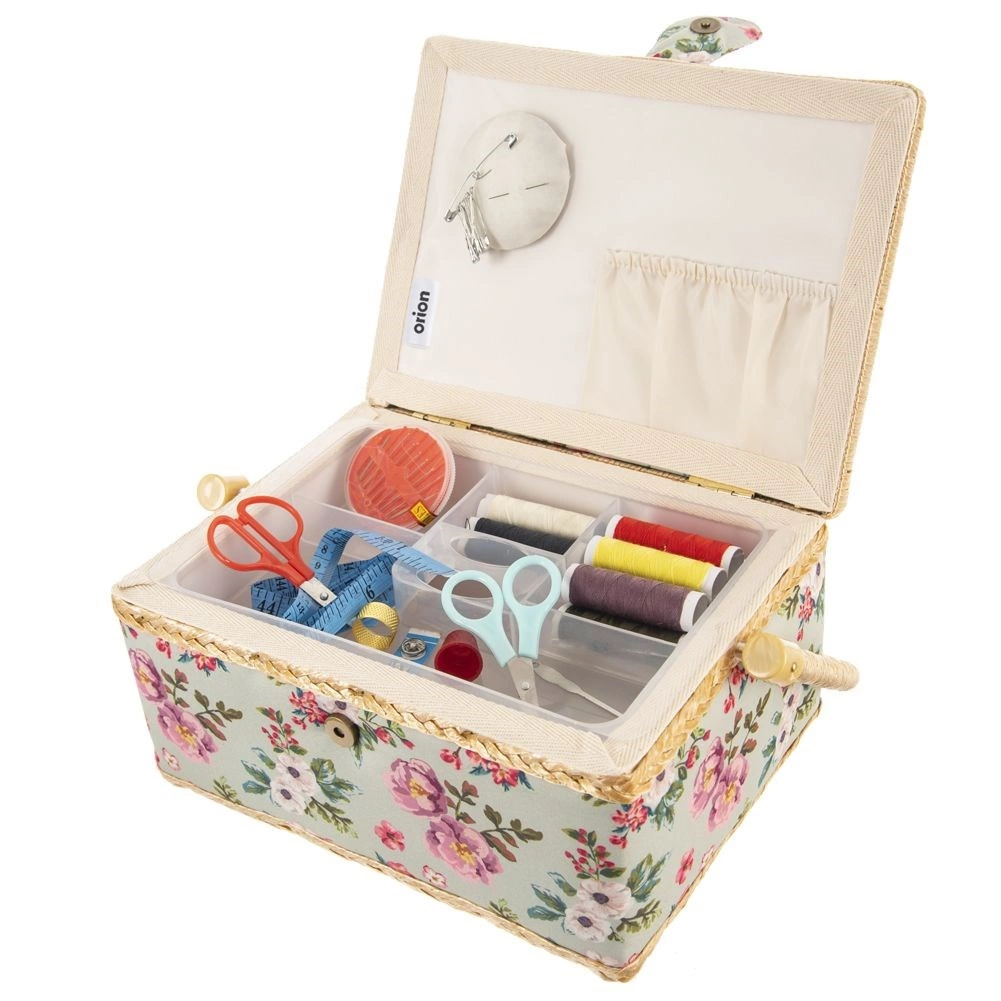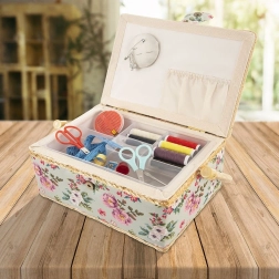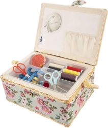 Ši stilinga siuvinėjimo dėžutė – idealus sprendimas kiekvienam, norinčiam siuvimo reikmenis visada turėti po ranka ir nepriekaištingai sutvarkytus. Dėl gėlių motyvo ir tvirto atlikimo ji atrodo dekoratyviai ir kartu yra maksimaliai funkcionali. Tinka ir kaip papuošalų organizatorius bei smulkioms kūrybinėms priemonėms.
