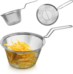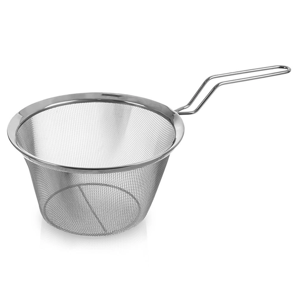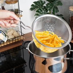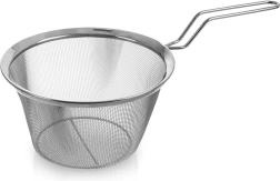 Smulkus nerūdijančio plieno tinklas greitai nusausina makaronus, daržoves ir bulvytes fri, neleidžia praslysti smulkiems gabalėliams.