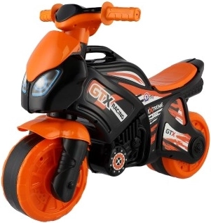 Vaikiškas balansinis motociklas sportiško dizaino pradžiugins visus mažus greičio mėgėjus. Dėl patvarios plastikinės konstrukcijos jis puikiai tinka smagiam ir saugiam žaidimui. Dizainas daugiausia oranžinis-juodas su GTX Racing logotipais, suteikiančiais tikro lenktyninio motociklo pojūtį.