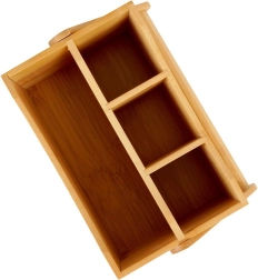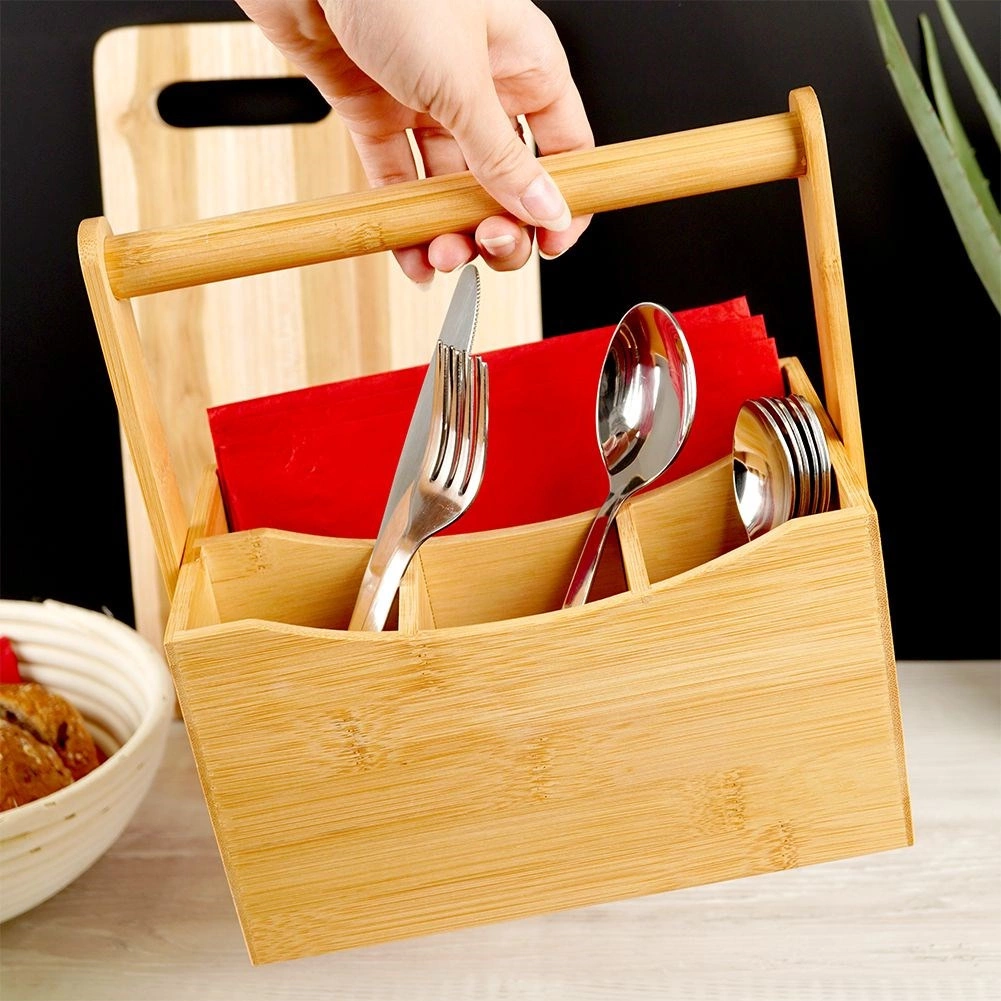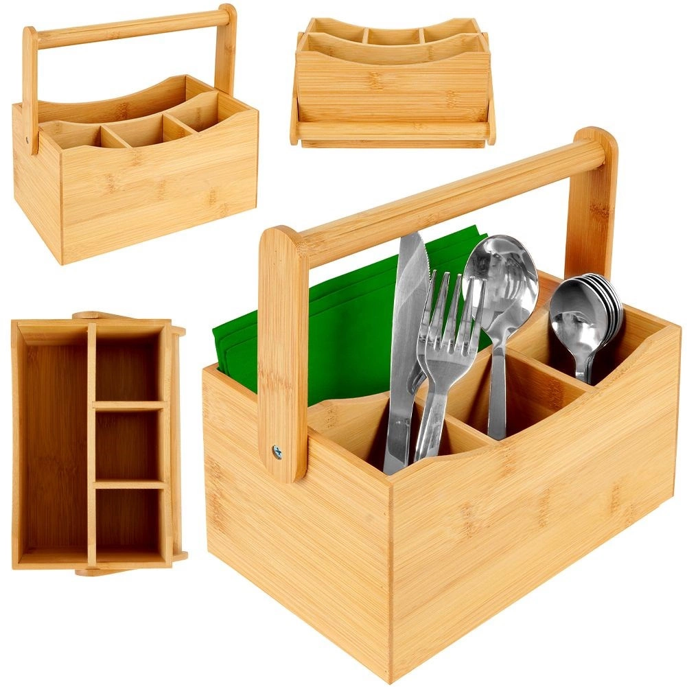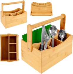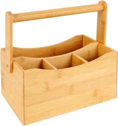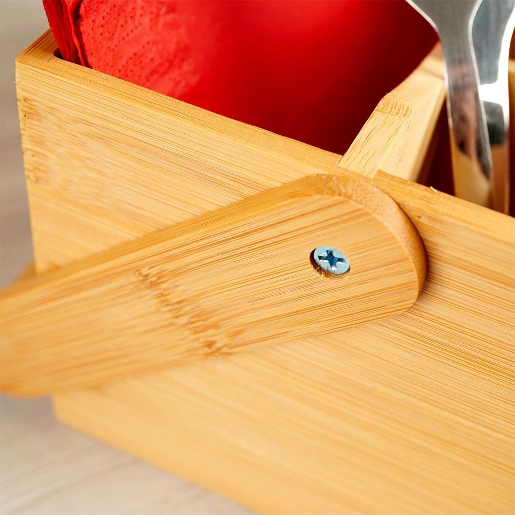 Organizatorius pagamintas iš bambuko medienos, kuri pasižymi natūraliu patvarumu, mažu svoriu ir elegantiška išvaizda. Tinka naudoti namų stalui, restoranuose, bistruose ir maitinimo paslaugose, kur palengvina padažų, prieskonių ir stalo įrankių serviravimą.
