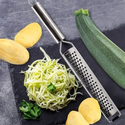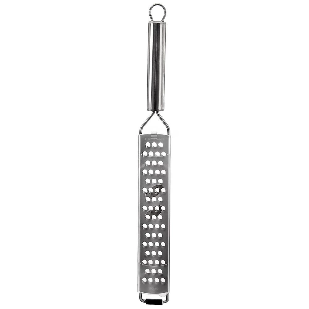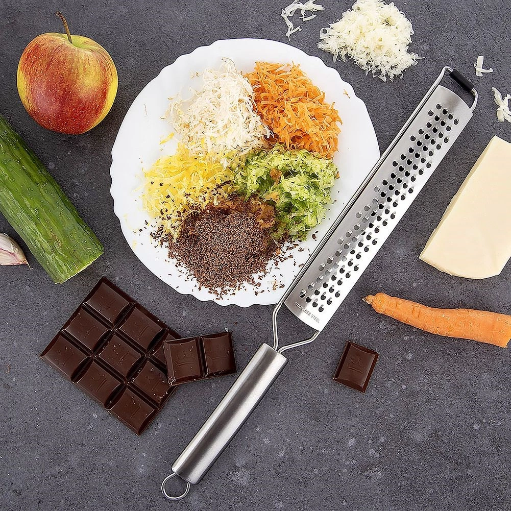 Smulkios angos ir kokybiškas nerūdijančio plieno ašmuo užtikrina greitus, švarius ir tolygius rezultatus tarkuojant sūrius, daržoves ar citrusų žievelę.
