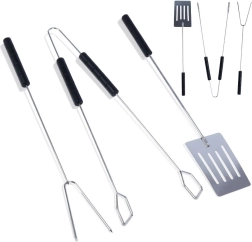 Šis universalus grilinimo rinkinys puikiai tinka vartymui, serviravimui ir tiksliam kepsnių, daržovių ar žuvies suėmimui. Ilgos rankenos užtikrina saugų darbą virš kaitros, o tvirta chromuoto plieno konstrukcija atlaiko aukštas temperatūras.