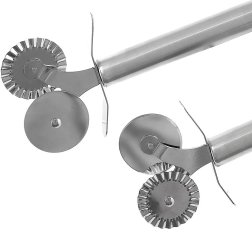 Vienas lygus ratukas švariems tiesiems pjūviams, o kitas banguotas – dailiems dantytiems kraštams ir tešlos sandarinimui – idealiai tinka ravioli, sausainiams ir tartaletėms.