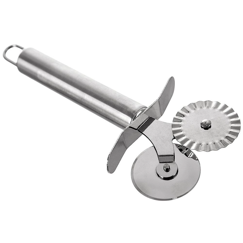 Universalus nerūdijančio plieno pjaustymo ratukas su dviem pjovimo diskais palengvina naminių makaronų, ravioli, sausainių ir sūrių krekerių ruošimą. Lygus ratukas pjauna idealiai tiesiai, o dekoratyvinis banguotas ratukas sukuria išraiškingus dantytus kraštus ir kartu padeda sandariai užspausti kraštus koldūnėliams ar ravioli.