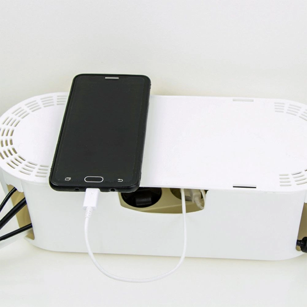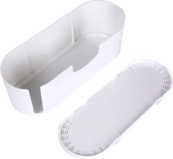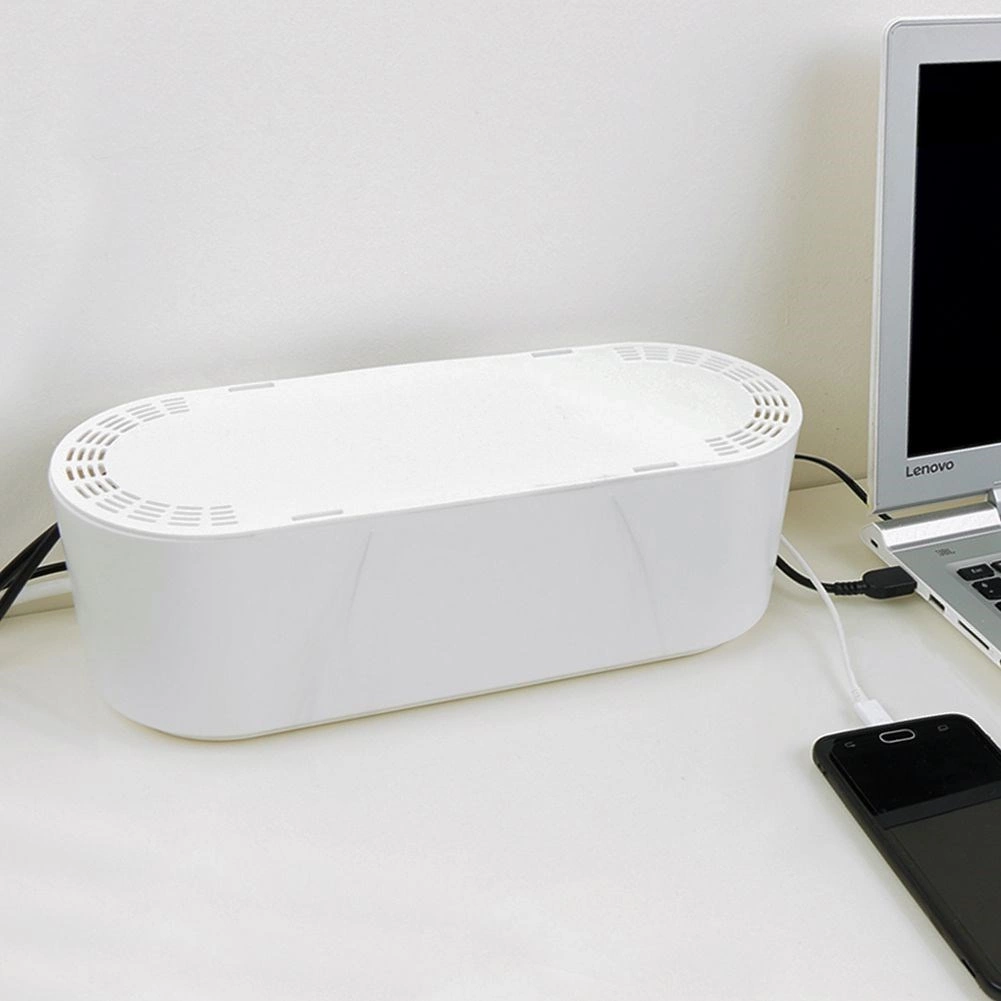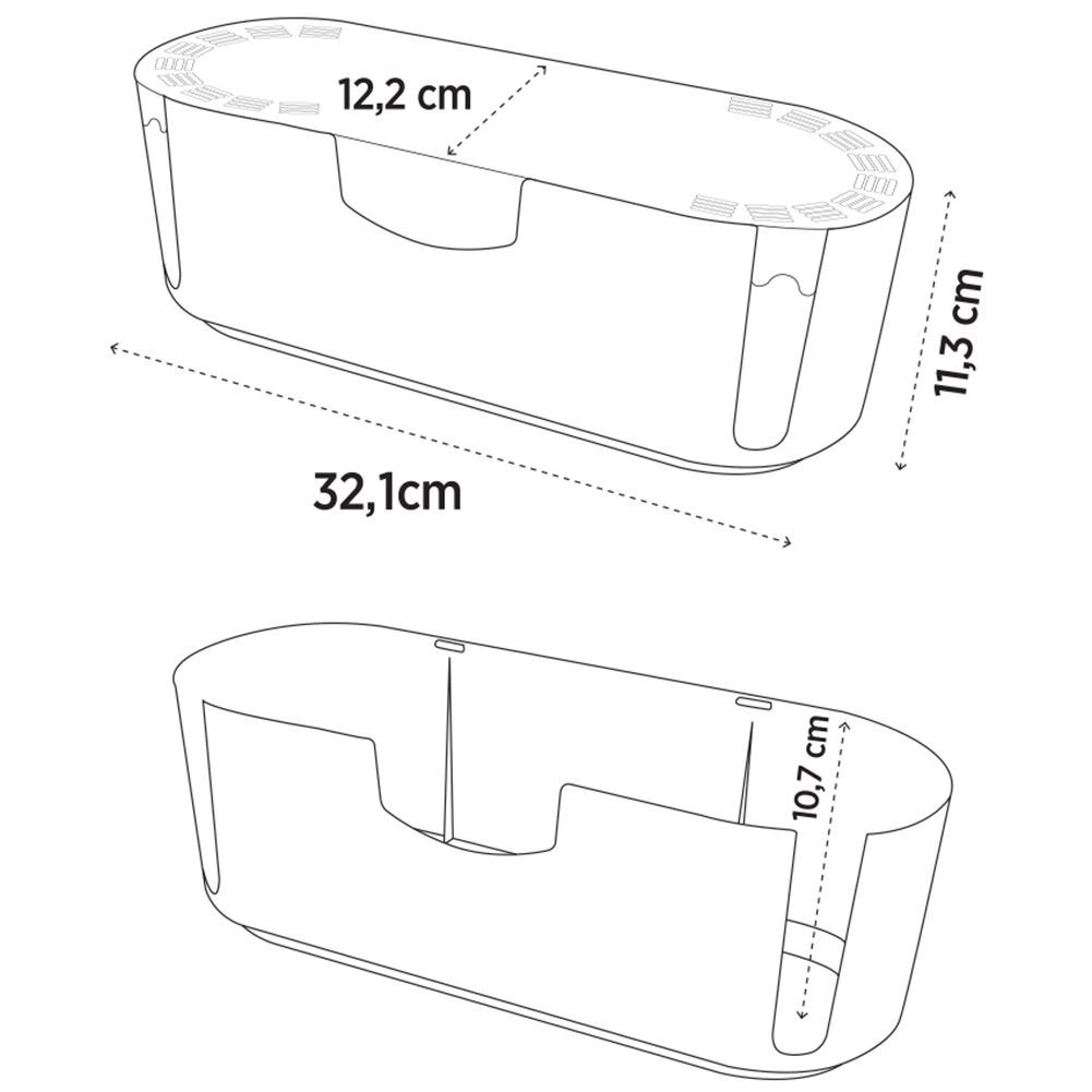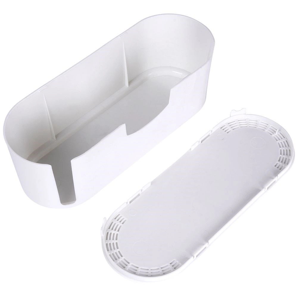 Laikykite darbo stalą ir svetainę nepriekaištingai tvarkingus su šiuo balto spalvos kabelių tvarkytuvu, kurio išmatavimai 32 × 12 × 11,5 cm. Jis paslepia ilgintuvą ir įkroviklius, neleidžia susipainioti laidams, apsaugo nuo dulkių, drėgmės ir mechaninių pažeidimų, o dangtyje esančios ventiliacijos angos užtikrina saugų šilumos išsisklaidymą. Šoninės angos palengvina tinkamą laidų vedimą ir didina saugumą namuose su vaikais ir augintiniais.