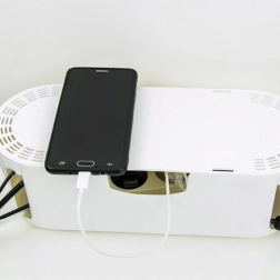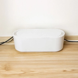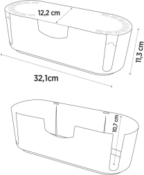 Dėl kompaktiškų 32 × 12 × 11,5 cm matmenų dėžė tinka tiek ant stalo, tiek ant lentynos, tačiau talpina įprastą kelių lizdų juostą. Glotnus, lengvai valomas baltas paviršius dera šiuolaikiniame interjere ir saugo laidus nuo dulkių, drėgmės bei mechaninių pažeidimų. Tvarkytuvas taip pat didina saugumą – riboja prieigą prie atvirų lizdų ir laidų.
