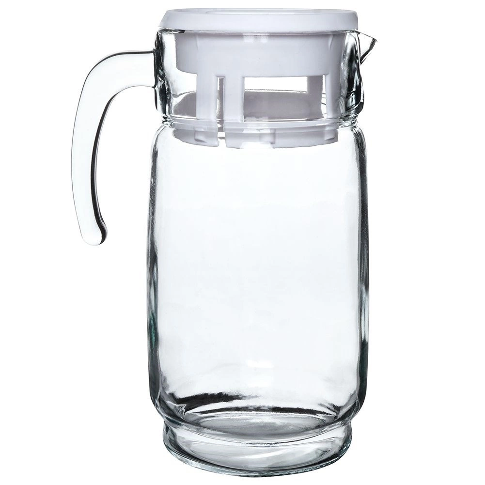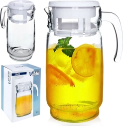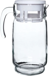 Elegantiškas stiklinis ąsotis su baltu dangteliu, kurio talpa iki 2 litrų, idealiai tinka vandeniui, sultims, limonadams ir šaltai arbatai. Dėl tvirtos rankenos ir formuoto snapelio gėrimai pilami patogiai ir be varvėjimo. Praktinis dangteliukas saugo turinį nuo nešvarumų ir vabzdžių, o skaidrus stiklas suteikia jūsų stalui dekoratyvų įvaizdį.