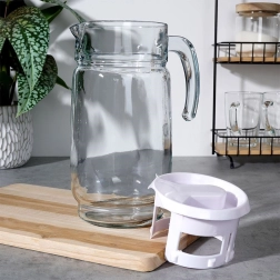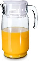 Praktiškas plastikinis dangtelis balta spalva leidžia kontroliuojamai pilti ir saugo gėrimus, pavyzdžiui, nuo vabzdžių. Klasikinė forma ir skaidrus dizainas užtikrina, kad ąsotis puikiai derės prie bet kokio stalo ir atrodys dekoratyviai. Be dangtelio tinka plauti indaplovėje, o gėrimus patogu laikyti šaldytuve.