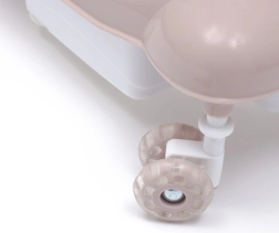 Dėl trijų pakopų aukščio reguliavimo vaikštynę pritaikysite prie vaiko poreikių. Priekiniai 360° pasukami silikoniniai ratukai užtikrina sklandų judėjimą ir grindų tausojimą, galiniai guminiai fiksuoti ratukai didina stabilumą. Speciali apsauga nuo apvirtimo suteikia papildomą saugumą.