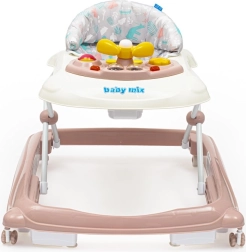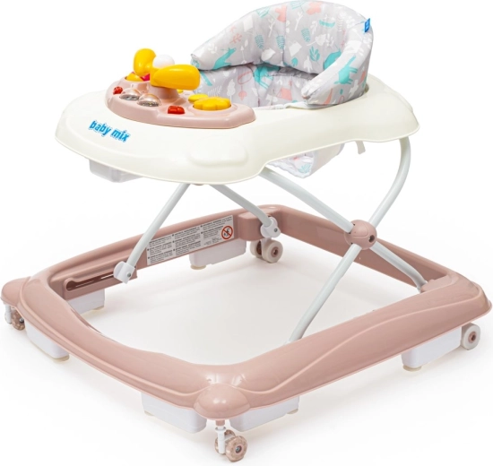 BABY MIX vaikštynė skirta vaikams nuo 6 mėn. ir dera pramogą su saugia pagalba mokantis vaikščioti. Multimedijų skydelis su šviesos efektais, signalu ir pasukamu vairu skatina aktyvų žaidimą, lavina motoriką ir pojūčius. Maloniai paminkštintą sėdynę galima lengvai nuimti ir išskalbti, todėl priežiūra paprasta.
