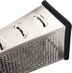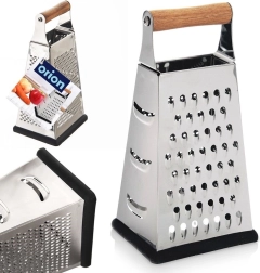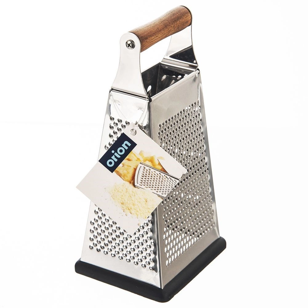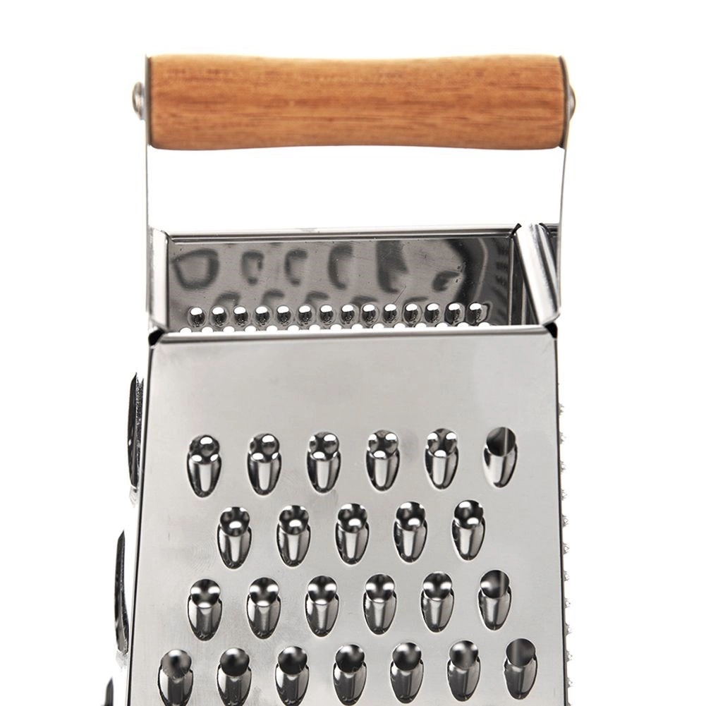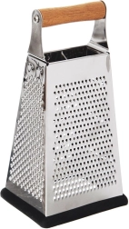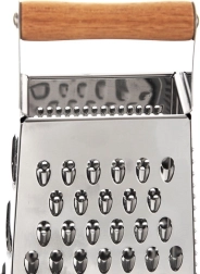 Atraskite universalų virtuvinį tarkuoklį, kuris palengvina daržovių, vaisių, sūrių ir prieskonių paruošimą. Korpusas iš nerūdijančio plieno garantuoja ilgaamžiškumą ir aštrius ašmenis, o patogi akacijos medžio rankena ir neslystantis guminis pagrindas suteikia užtikrintą suėmimą ir stabilumą darbo metu.