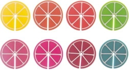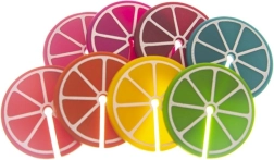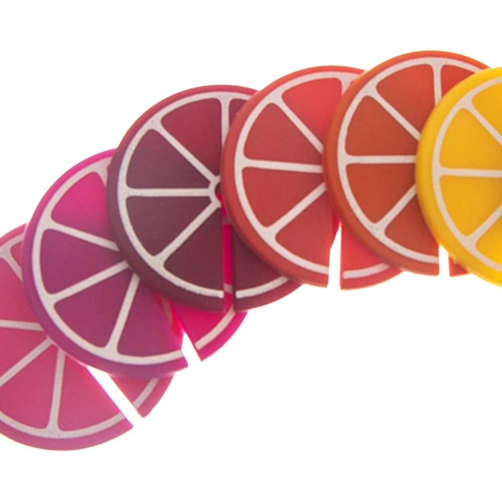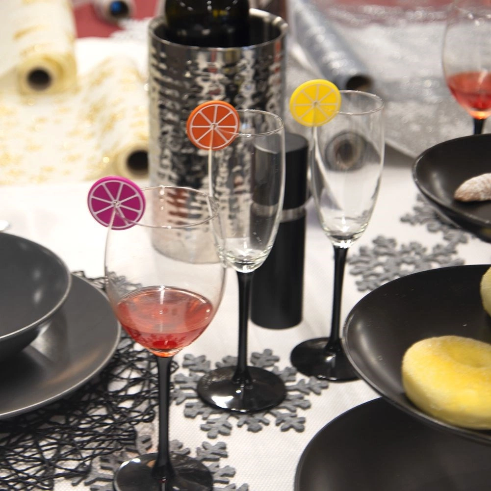 Pažymėkite taures ir stiklines greitai ir stilingai. Silikoniniai žymekliai, primenantys citrusinių griežinėlių formą, lengvai pritvirtinami prie taurės kojelės arba prie stiklinės viršutinio krašto. Jie yra spalviškai išskirti, todėl kiekvienas lengvai įsimins savo spalvą ir išvengs gėrimų supainiojimo.