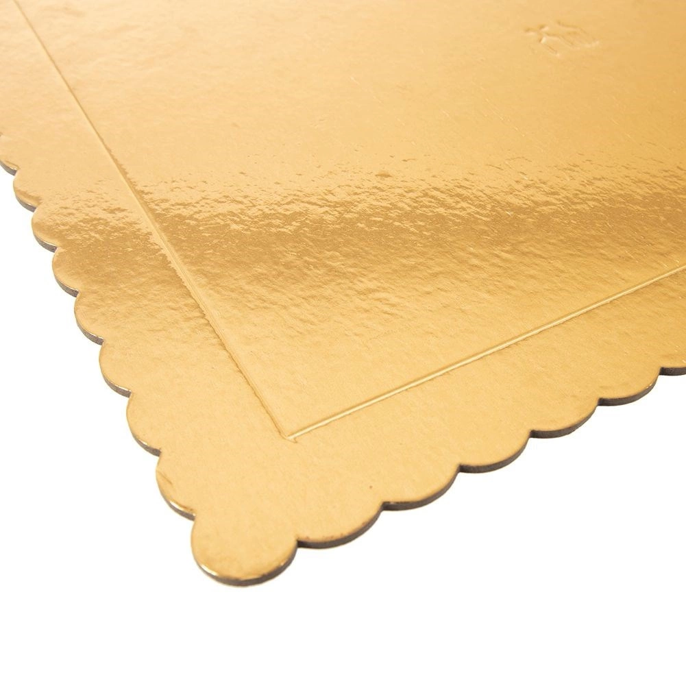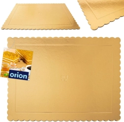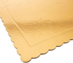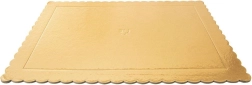 Elegantiškas ir praktiškas pasirinkimas namų ir profesionaliai kepyklai. Stačiakampis padėkliukas su aukso paviršiaus apdaila ir dekoratyviniu banguotu krašteliu pabrėžia bet kurio torto ar deserto išvaizdą. Pagamintas iš storo, labai tvirto kartono, kuris nedeformuojasi ir patikimai išlaiko didesnius bei daugiasluoksnius desertus.