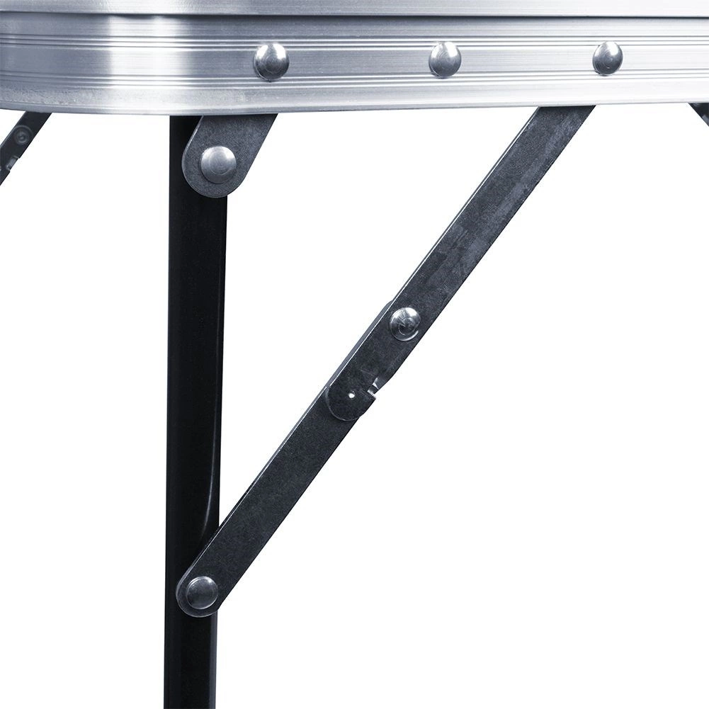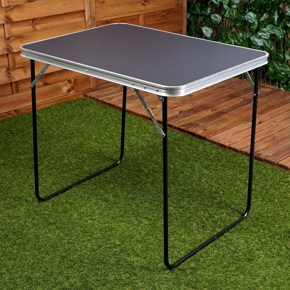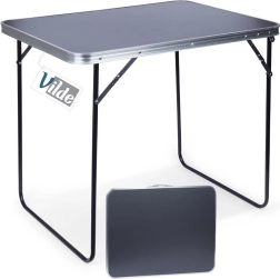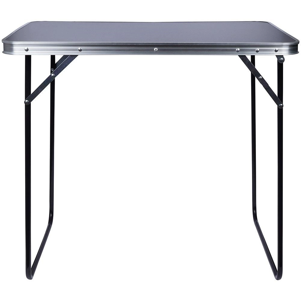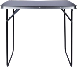 Praktiškas sulankstomas stalas stovyklavimui, sodui ir balkonui, matmenys 80 × 60 × 70 cm, maksimalus leistinas svoris iki 30 kg. Patvari MDF plokštė grafito spalvos su specialiu apsauginiu sluoksniu, tvirtas metalinės konstrukcijos rėmas ir aliuminio kraštas užtikrina stabilumą. Sulanksčius tampa kompaktiškas, turi integruotą rankeną ir yra atsparus vandeniui – idealus stovyklavimui, piknikams ir naudojimui namuose.