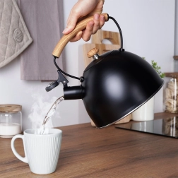 Šis stilingas nerūdijančio plieno virdulys idealiai tinka kasdieniam kavos, arbatos ir žolelių užpilų ruošimui. Matinis juodas dizainas su medžio dekoru ant rankenos puikiai dera tiek moderniose, tiek klasikinėse virtuvėse. Dėl apgalvotos konstrukcijos su akuterminiu dugnu vanduo įkaista greitai net ir mažesne galia, taip taupant laiką ir energiją.