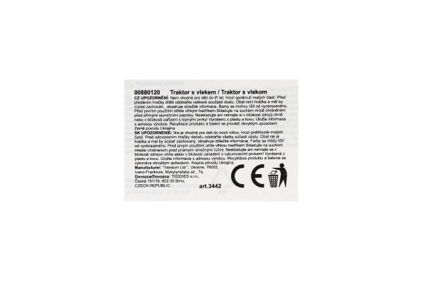 Traktorius išsiskiria ryškiomis spalvomis ir patvaria plastikine konstrukcija, kuri užtikrina ilgaamžiškumą ir saugumą žaidžiant.