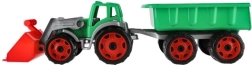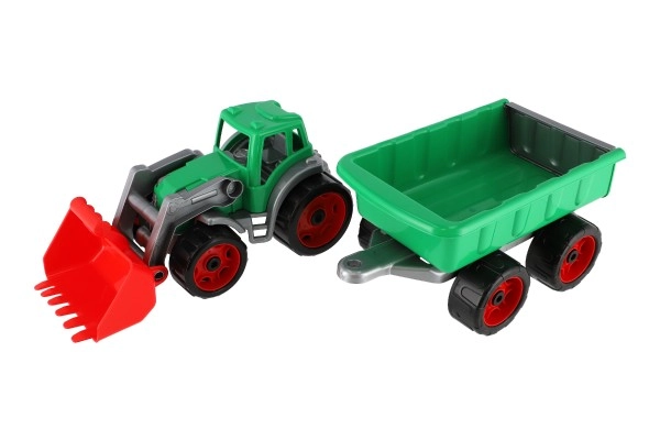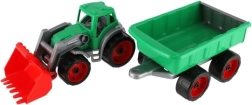Šis traktorius su krautuvu ir priekaba pagamintas iš tvirto plastiko, kuris atlaiko vaikų žaidimus ir yra atsparus pažeidimams.