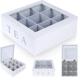 Dėžutė pagaminta iš patvarios MDF ir turi 9 atskirus skyrius įvairioms rūšims ir skoniams. Tvirti vyriukai užtikrina patogų atidarymą ir uždarymą. Puikus sprendimas namams, biurui ir gastronomijai – taip pat praktiška dovanos idėja arbatos mėgėjams.