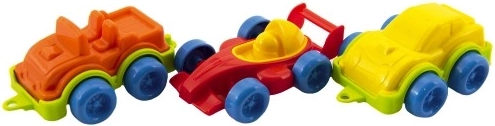 Spalvoti mini automobiliai, 10–12 cm ilgio, lengvai pajuda švelniai stumtelėjus. Puikiai tinka smulkiajai motorikai ir akių-rankos koordinacijai lavinti.