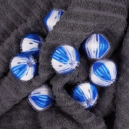 Praktiškas 8 skalbimo kamuoliukų rinkinys, kurių skersmuo 3,5 cm, skalbimo metu padeda sugaudyti plaukus, pūkelius ir gumulėlius, saugo skalbinius ir skalbyklę bei padidina skalbiklio veiksmingumą. Patvarūs balti–mėlyni kamuoliukai turi švelnią tinklinę struktūrą, kuri yra draugiška audiniams, ir juos galima naudoti pakartotinai iki 60 °C.
