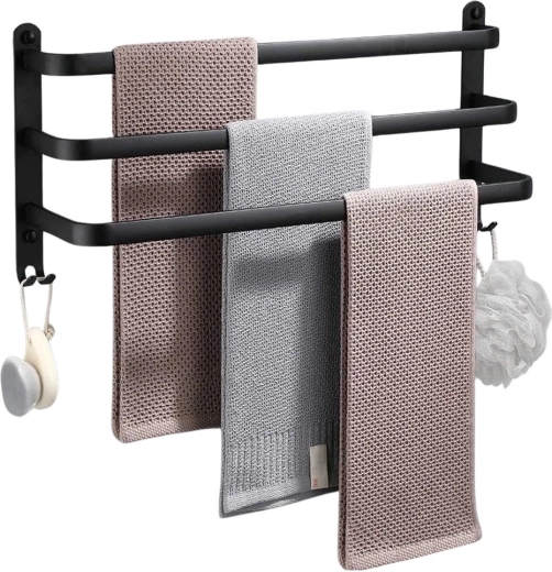 Trys horizontalios juostos leidžia pakabinti kelis rankšluosčius vienu metu, kad jie greičiau išdžiūtų ir išliktų gaivūs.