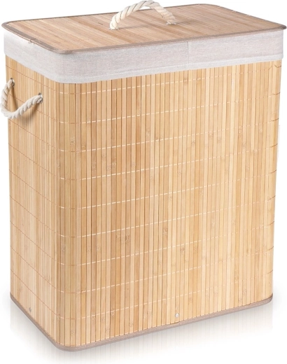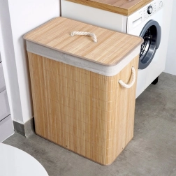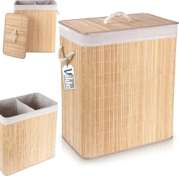 Užtikrinkite tvarką namuose su erdviu bambukiniu skalbinių krepšiu Vilde. Natūrali smėlio atspalvio medžiaga ir švarus dizainas lengvai dera su bet kokiu interjeru. Stabili konstrukcija iš bambuko lamelių yra lengva, bet patvari, o nuimamas dangtis padeda sulaikyti nemalonius kvapus ir išlaikyti tvarkingą patalpos išvaizdą.