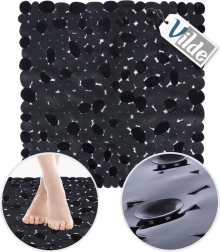 Praktiška vonios kilimėlio danga, 51 × 51 cm, užtikrina saugų ir stabilų žingsnį duše, vonioje ir dušo padėkle. Dėl tankaus siurbtukų tinklo tvirtai laikosi ant lygaus paviršiaus, mažina paslydimo ant šlapio paviršiaus riziką ir kartu yra atspari vandeniui ir drėgmei. Elegantiška juoda spalva tinka bet kuriai vonios kambario aplinkai.