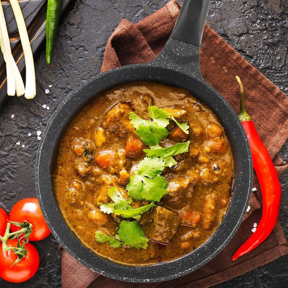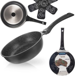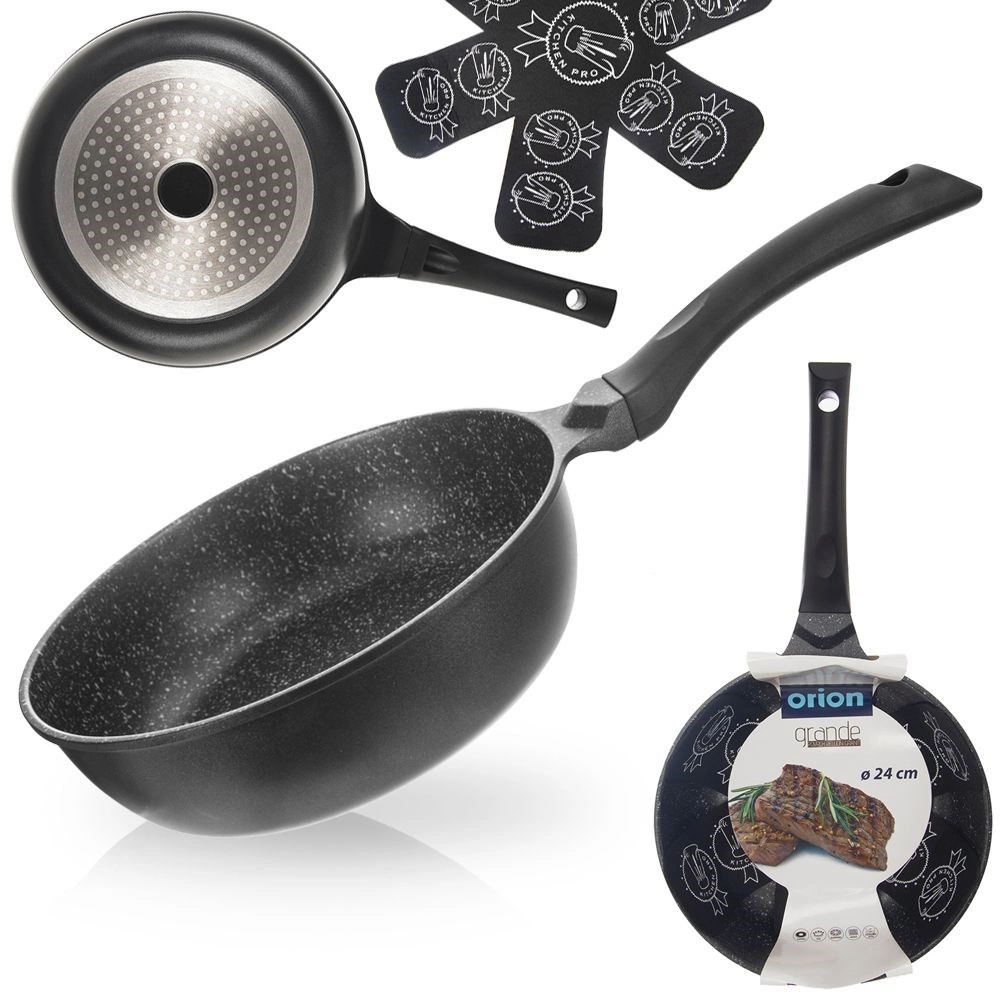 Gili nelipni keptuvė, 24 cm skersmens, iš patvaraus lieto aliuminio, užtikrina greitą ir tolygų šilumos pasiskirstymą, nelipnią granito dangą be PFOA ir universalų naudojimą visų tipų kaitlentėms, įskaitant indukcines. Dėl aukšto krašto idealiai tinka kepimui ir troškinimui, taupo energiją ir leidžia gaminti su minimaliu riebalų kiekiu. Komplekte yra apsauginis veltinio tarpiklis saugiam sudėjimui viena ant kitos.