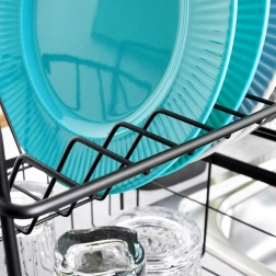 Maksimizuokite vietą prie kriauklės su kompaktišku ir stabiliu džiovintuvu, kuriame telpa viskas, ko reikia – nuo lėkščių ir stiklinių iki stalo įrankių. Dviaukštis išdėstymas užtikrina greitesnę oro cirkuliaciją ir taip spartesnį džiūvimą, o išimamas varvėjimo padėklas palaiko stalviršį be šlapių žymių.