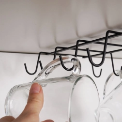 Dešimt patvarių kabliukų talpina puodelius, puodukus ir virtuvinius įrankius, todėl atlaisvinsite vietos spintelėse ir ant stalviršio.
