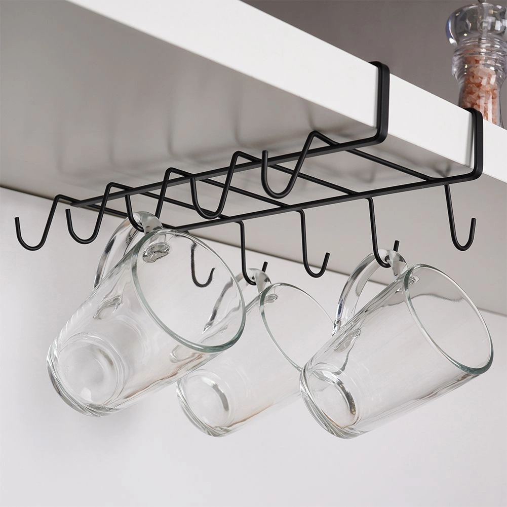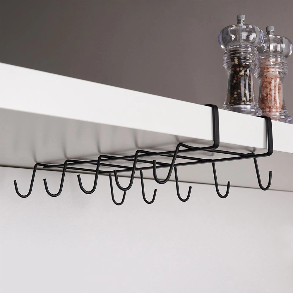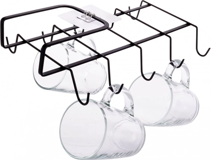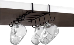Praktiška kabanti pakaba po lentynomis ir spintelėmis padės sutvarkyti virtuvę ir maksimaliai išnaudoti vertikalią erdvę. Dėl dešimties kabliukų patogiai susidėsite puodelius, puodukus ir virtuvinius priedus. Matinė juoda apdaila suteikia interjerui lofto charakterį.