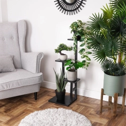 Daugiapakopis išdėstymas keturiuose skirtinguose aukščiuose kuria patrauklias žalumos ir dekoracijų kompozicijas, minimaliai apkraudamas grindų plotą. Stovas idealiai tinka gyviems ir dirbtiniams augalams, o savo moderniu lofto dizainu suteikia interjerui išskirtinį charakterį.