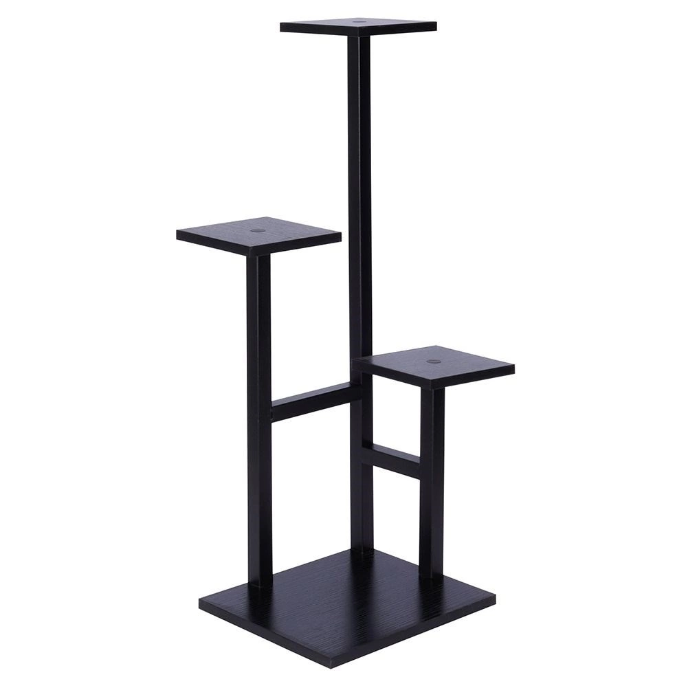 Elegantiškas keturių pakopų gėlių stovas su kompaktišku pagrindu taupo vietą ir tvarkingai išdėlioja jūsų augalus bei dekoracijas. Jo matmenys 36,5 × 32 × 84 cm, bendra apkrova iki 15 kg (maks. 5 kg vienai lentynai). Derinys iš patvaraus metalo ir MDF su medžio dekoro juoda spalva, stabili konstrukcija ir industrinis stilius tinka svetainei, biurui ir balkonui.