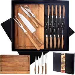 Pjaustykite ir patiekite kepsnius tiesiai nuo lentelės. Rinkinys puikiai tinka namų grilinimui ir restoranams, pateikiamas dovaniniame įpakavime.