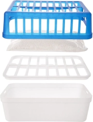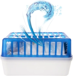 Galingas drėgmės surinkėjas namams, 2,2 l talpos, greitai mažina perteklinę drėgmę, slopina pelėsį ir kvapus bei gerina oro kokybę. Tvirto plastiko indas mėlynos–baltos spalvos pripildytas kalcio chlorido granulėmis, kurios bekvapės ir saugios žmonėms bei gyvūnams – jos suriša drėgmę ir paverčia ją vandeniu apatinėje rezervuaro dalyje.