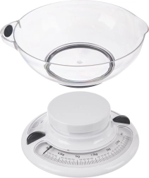 Šios mechaninės virtuvinės svarstyklės – patikimas pagalbininkas kasdieniam maisto gaminimui ir kepimui. Dėl nuimamo skaidraus 1,4 l talpos dubens lengvai pasversite tiek birias, tiek skystas žaliavas. Analoginis ciferblatas su dviguba skale g/kg ir lbs/oz yra aiškus ir leidžia patogiai nustatyti nulį. Svarstyklėms nereikia baterijų, todėl jos visada paruoštos naudoti.