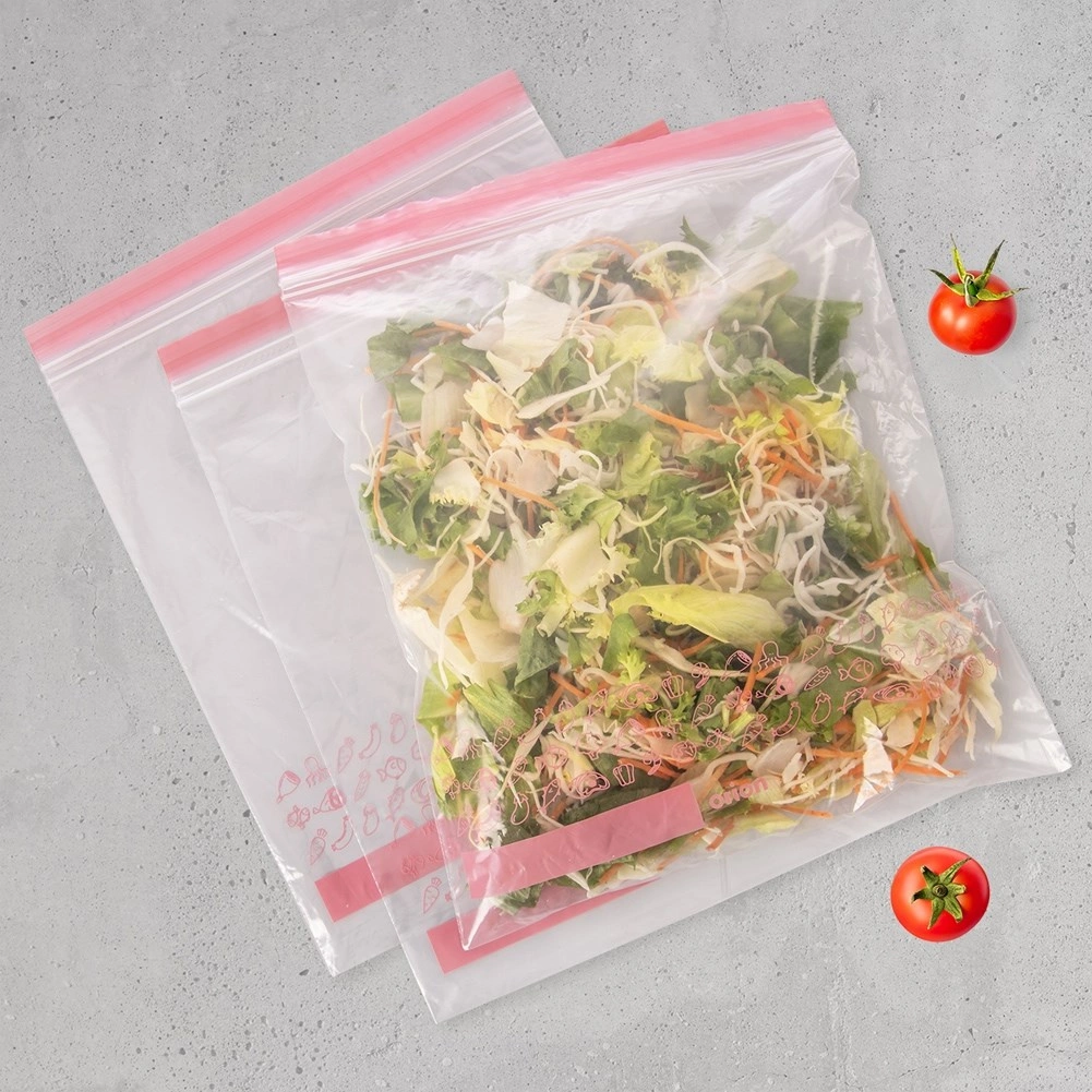 Praktiškas 25 skaidrių maišelių su užtrauktuku rinkinys, 34 × 27 cm, saugiam ir higieniškam maisto bei smulkmenų laikymui. Dėl dvigubo užtrauktuko jie yra 100% sandarūs, tinkami šaldytuvui ir šaldikliui ir gali būti naudojami pakartotinai. Ant maišelių yra vieta užrašui patogiai organizacijai.