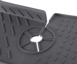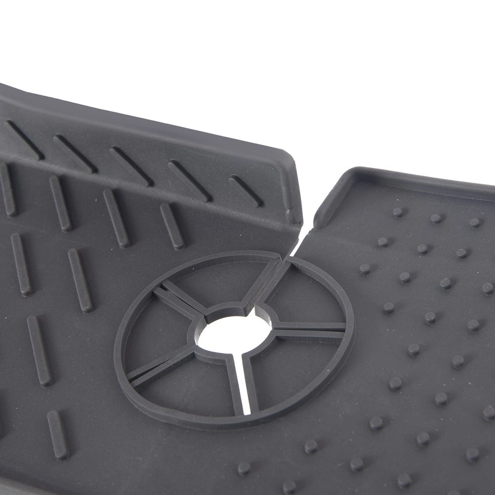 Aukštos kokybės, elastingas grafito spalvos silikonas užtikrina stabilumą dėl neslystančios tekstūros su iškilimais ir lengvą priežiūrą – kilimėlį galima plauti indaplovėje. Dvi suformuotos nutekėjimo briaunos efektyviai nukreipia perteklinį vandenį atgal į kriauklę ar praustuvę.
