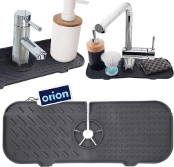 Užtikrinkite švarą ir sausumą prie kriauklės ir vonios kambaryje. Silikoninis kilimėlis su patogia išpjova aplink maišytuvą sulaiko lašus, grąžina vandenį atgal į kriauklę ir tuo pačiu tarnauja kaip organizatorius kempinėlėms, šepetėliams ar dozatoriams. Apsaugo stalviršį nuo drėgmės, nešvarumų ir kalkių nuosėdų.